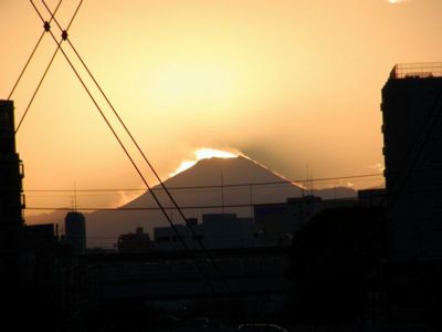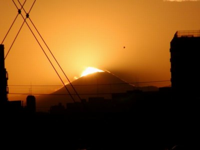 から見て富士山頂に陽が沈む日です。10分くらい前までは富士山の姿は全く見