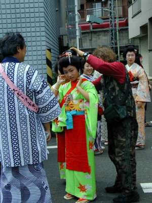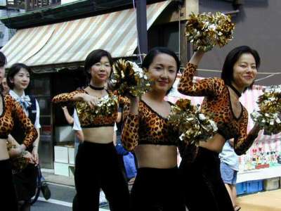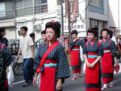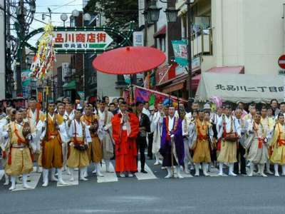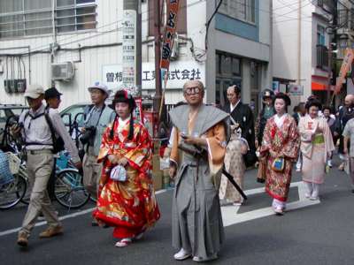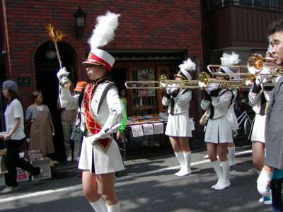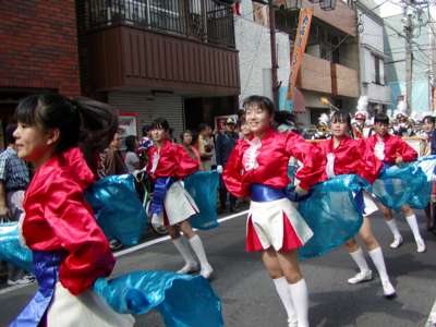 品川寺までのパレード。鼓笛隊、バトントワラーから時代仮装行列、交通